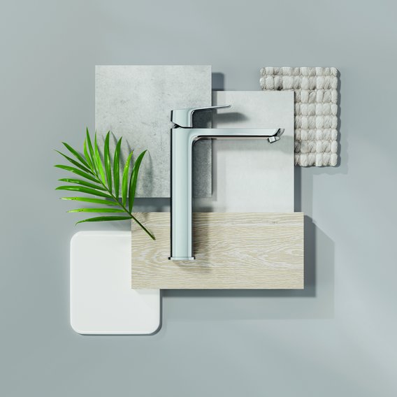 In klassischem Chrom passt GROHE Cubeo zur weichen, hellen Trendfarbe Coconut Milk. Die Kombination wirkt einladend und beruhigend; Natureiche, Pflanzen und salbeifarbene Accessoires machen das Bad zu einem gemütlichen Rückzugsort.