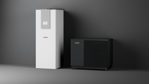 - Set bestehend aus außen aufgestellter Luft-Wasser-Wärmepumpe und Integralspeicher mit 168 l Fassungsvermögen zum Heizen, Kühlen und Warmwasserbereiten
